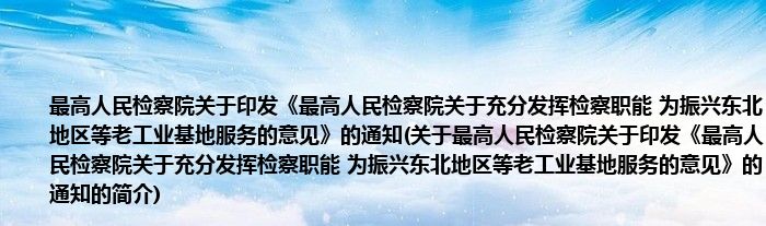 本文关于最高人民检察院关于印发《最高人民检察院关于充分发挥检察职能,为振兴东北地区等老工业基地服务的意见》的通知的简介就讲解完毕,希望对大家有所帮助。