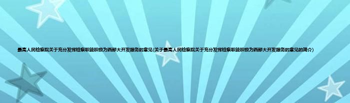 最高人民检察院关于充分发挥检察职能积极为西部大开发服务的意见(关于最高人民检察院关于充分发挥检察职能积极为西部大开发服务的意见的简介)