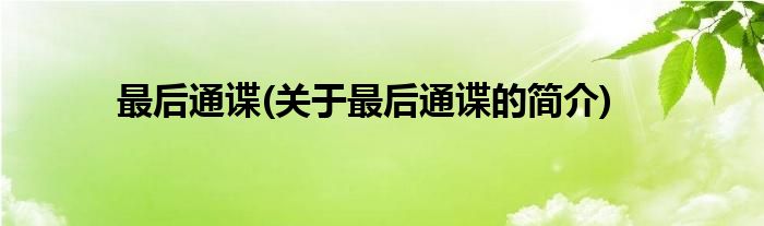 本文关于最后通谍的简介就讲解完毕,希望对大家有所帮助。