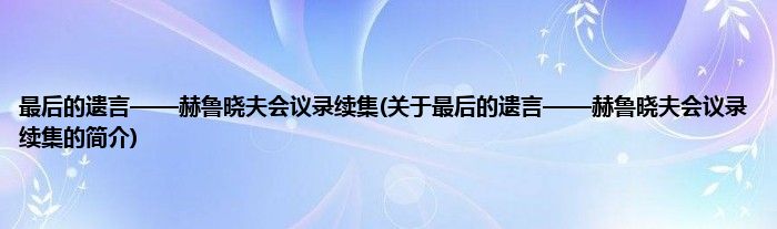 大家好,最后的遗言——赫鲁晓夫会议录续集,关于最后的遗言——赫鲁晓夫会议录续集的简介很多人还不知道,现在让我们一起来看看吧!