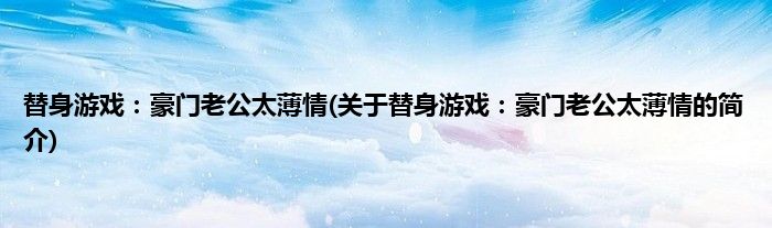 替身游戏:豪门老公太薄情(关于替身游戏:豪门老公太薄情的简介)