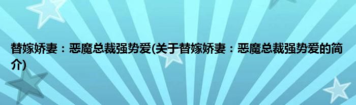 本文关于替嫁娇妻:恶魔总裁强势爱的简介就讲解完毕,希望对大家有所帮助。
