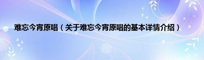 难忘今宵原唱(关于难忘今宵原唱的基本详情介绍)