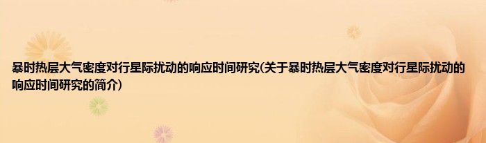 本文关于暴时热层大气密度对行星际扰动的响应时间研究的简介就讲解完毕,希望对大家有所帮助。