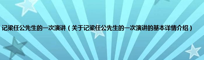 本文关于记梁任公先生的一次演讲的基本详情介绍就讲解完毕,希望对大家有所帮助。
