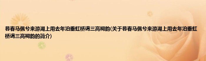 本文关于暮春马佩兮来游湖上用去年泊垂虹桥谒三高祠韵的简介就讲解完毕,希望对大家有所帮助。