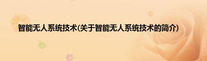 本文关于智能无人系统技术的简介就讲解完毕,希望对大家有所帮助。