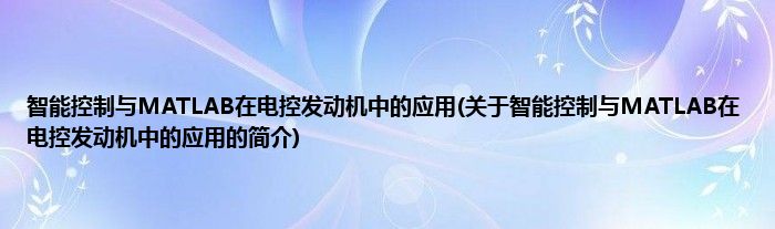 本文关于智能控制与MATLAB在电控发动机中的应用的简介就讲解完毕,希望对大家有所帮助。