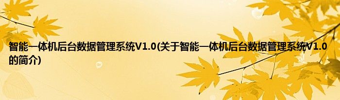 本文关于智能一体机后台数据管理系统V1.0的简介就讲解完毕,希望对大家有所帮助。