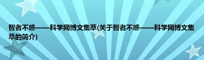 本文关于智者不惑——科学网博文集萃的简介就讲解完毕,希望对大家有所帮助。