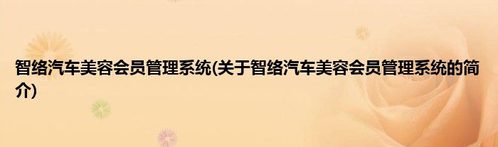 智络汽车美容会员管理系统(关于智络汽车美容会员管理系统的简介)