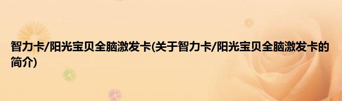 本文关于智力卡/阳光宝贝全脑激发卡的简介就讲解完毕,希望对大家有所帮助。