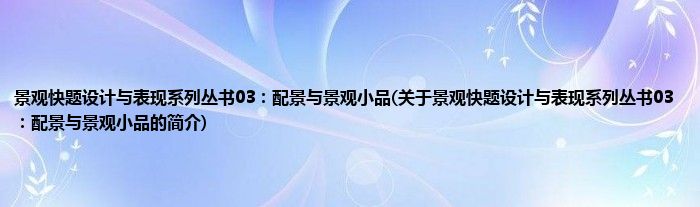 1、 《景观快题设计与表现系列丛书03:配景与景观小品》是2011年大连理工大学出版社出版的图书。