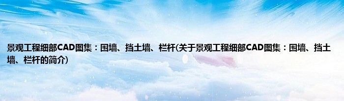 景观工程细部CAD图集:围墙、挡土墙、栏杆(关于景观工程细部CAD图集:围墙、挡土墙、栏杆的简介)