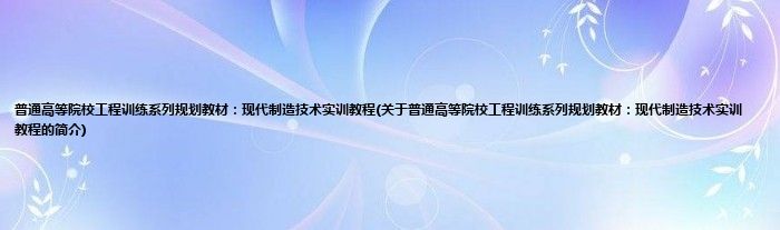 1、 《普通高等院校工程训练系列规划教材:现代制造技术实训教程》是2011年清华大学出版社出版的图书。