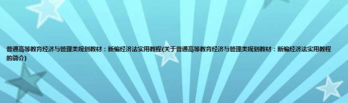 本文关于普通高等教育经济与管理类规划教材:新编经济法实用教程的简介就讲解完毕,希望对大家有所帮助。