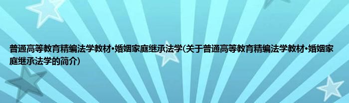 1、 《普通高等教育精编法学教材·婚姻家庭继承法学》是2010年1月1日北京大学出版社出版的图书。