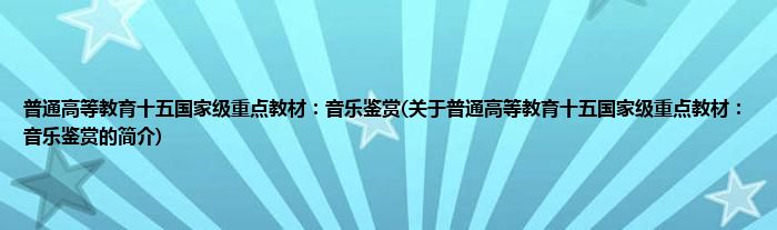 最佳答案大家好,普通高等教育十五国家级重点教材:音乐鉴赏,关于普通高等教育十五国家级重点教材:音乐鉴赏的简介很多人还不知道,现在让我们一起来看看吧! 1、 《普通高等教育十五国家级重点教材:音乐鉴赏》是高等教育出版社出版的图书。本文关于普通高等教育十五国家级重点教材:音乐鉴赏的简介就讲解...