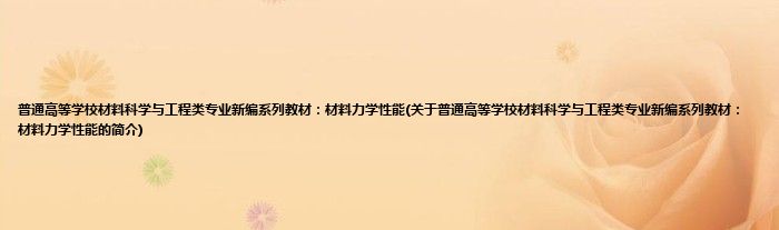 本文关于普通高等学校材料科学与工程类专业新编系列教材:材料力学性能的简介就讲解完毕,希望对大家有所帮助。