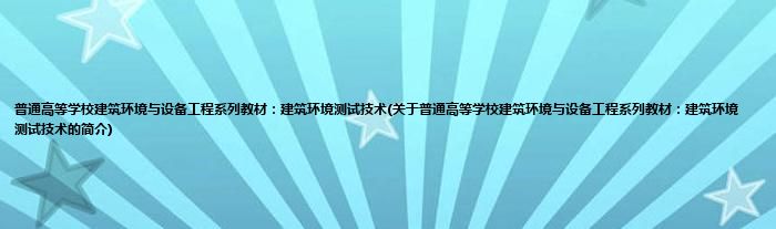 本文关于普通高等学校建筑环境与设备工程系列教材:建筑环境测试技术的简介就讲解完毕,希望对大家有所帮助。