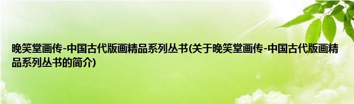 本文关于晚笑堂画传-中国古代版画精品系列丛书的简介就讲解完毕,希望对大家有所帮助。