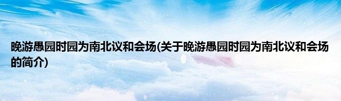 大家好,晚游愚园时园为南北议和会场,关于晚游愚园时园为南北议和会场的简介很多人还不知道,现在让我们一起来看看吧!