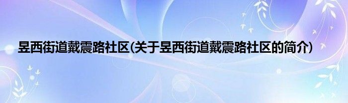 大家好,昱西街道戴震路社区,关于昱西街道戴震路社区的简介很多人还不知道,现在让我们一起来看看吧!