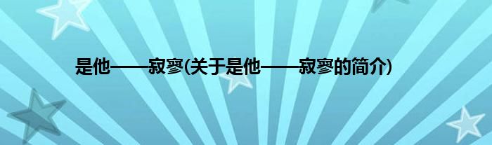 大家好,是他——寂寥,关于是他——寂寥的简介很多人还不知道,现在让我们一起来看看吧!