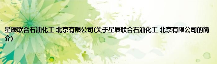 本文关于星辰联合石油化工 北京有限公司的简介就讲解完毕,希望对大家有所帮助。