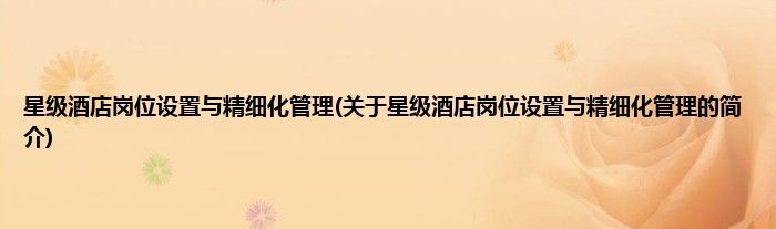 本文关于星级酒店岗位设置与精细化管理的简介就讲解完毕,希望对大家有所帮助。