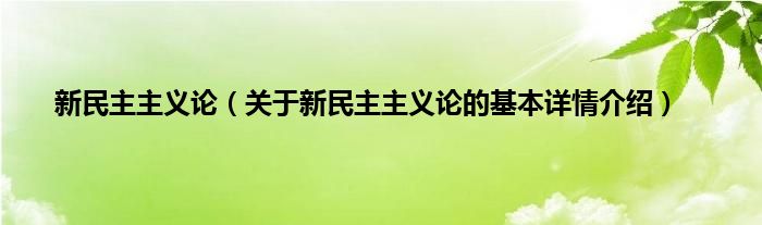 本文关于新民主主义论的基本详情介绍就讲解完毕,希望对大家有所帮助。