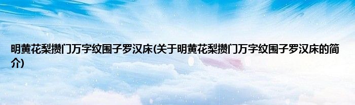 本文关于明黄花梨攒门万字纹围子罗汉床的简介就讲解完毕,希望对大家有所帮助。