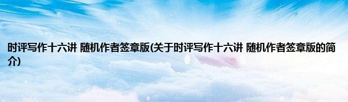 大家好,时评写作十六讲 随机作者签章版,关于时评写作十六讲 随机作者签章版的简介很多人还不知道,现在让我们一起来看看吧!