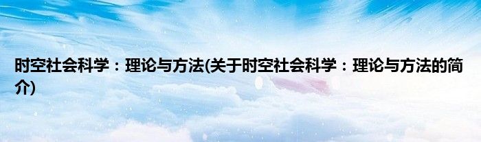 本文关于时空社会科学:理论与方法的简介就讲解完毕,希望对大家有所帮助。