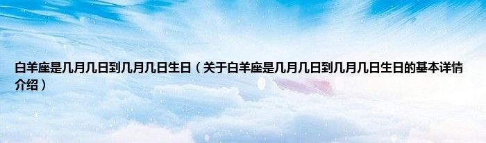 本文关于白羊座是几月几日到几月几日生日的基本详情介绍就讲解完毕,希望对大家有所帮助。