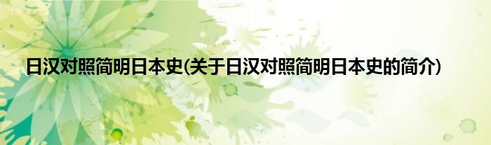 本文关于日汉对照简明日本史的简介就讲解完毕,希望对大家有所帮助。
