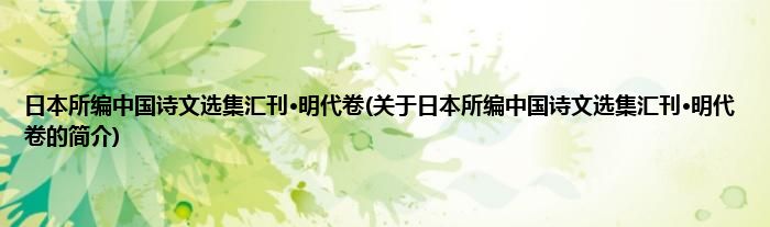 本文关于日本所编中国诗文选集汇刊·明代卷的简介就讲解完毕,希望对大家有所帮助。