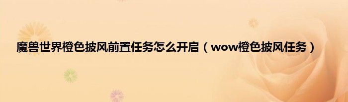 大家好,精选小编来为大家解答以上问题。魔兽世界橙色披风前置任务怎么开启,wow橙色披风任务很多人还不知道,现在让我们一起来看看吧!