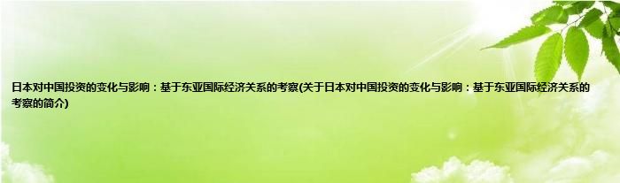 本文关于日本对中国投资的变化与影响:基于东亚国际经济关系的考察的简介就讲解完毕,希望对大家有所帮助。