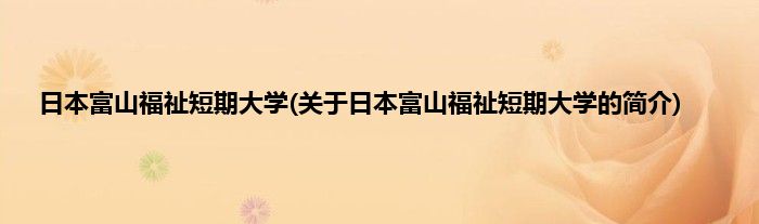 本文关于日本富山福祉短期大学的简介就讲解完毕,希望对大家有所帮助。