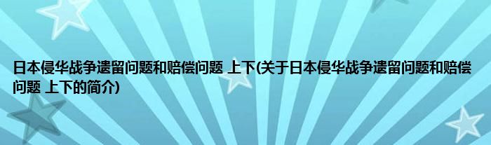 大家好,日本侵华战争遗留问题和赔偿问题 上下,关于日本侵华战争遗留问题和赔偿问题 上下的简介很多人还不知道,现在让我们一起来看看吧!