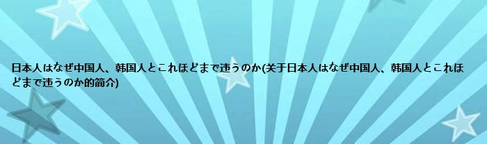 大家好,日本人はなぜ中国人、韩国人とこれほどまで违うのか,关于日本人はなぜ中国人、韩国人とこれほどまで违うのか的简介很多人还不知道,现在让我们一起来看看吧!