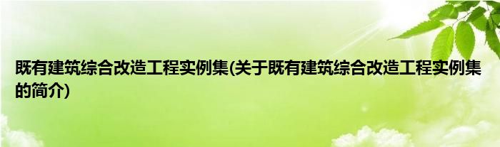 大家好,既有建筑综合改造工程实例集,关于既有建筑综合改造工程实例集的简介很多人还不知道,现在让我们一起来看看吧!