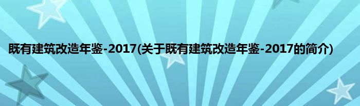 本文关于既有建筑改造年鉴-2017的简介就讲解完毕,希望对大家有所帮助。