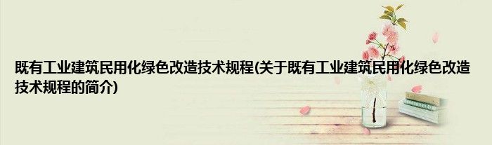 本文关于既有工业建筑民用化绿色改造技术规程的简介就讲解完毕,希望对大家有所帮助。