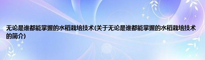 无论是谁都能掌握的水稻栽培技术(关于无论是谁都能掌握的水稻栽培技术的简介)