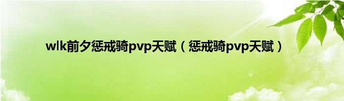 大家好,精选小编来为大家解答以上问题。wlk前夕惩戒骑pvp天赋,惩戒骑pvp天赋很多人还不知道,现在让我们一起来看看吧!