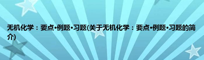 大家好,无机化学:要点·例题·习题,关于无机化学:要点·例题·习题的简介很多人还不知道,现在让我们一起来看看吧!