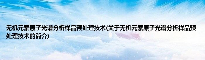 本文关于无机元素原子光谱分析样品预处理技术的简介就讲解完毕,希望对大家有所帮助。