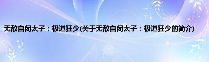 本文关于无敌自闭太子:极道狂少的简介就讲解完毕,希望对大家有所帮助。